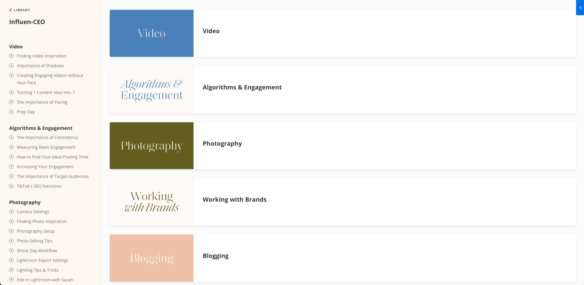 A vault of 70+ training videos you need to run and grow your online business. Get trainings by Sarah on: social media, blogging, monetization, photography, brand partnerships & more!